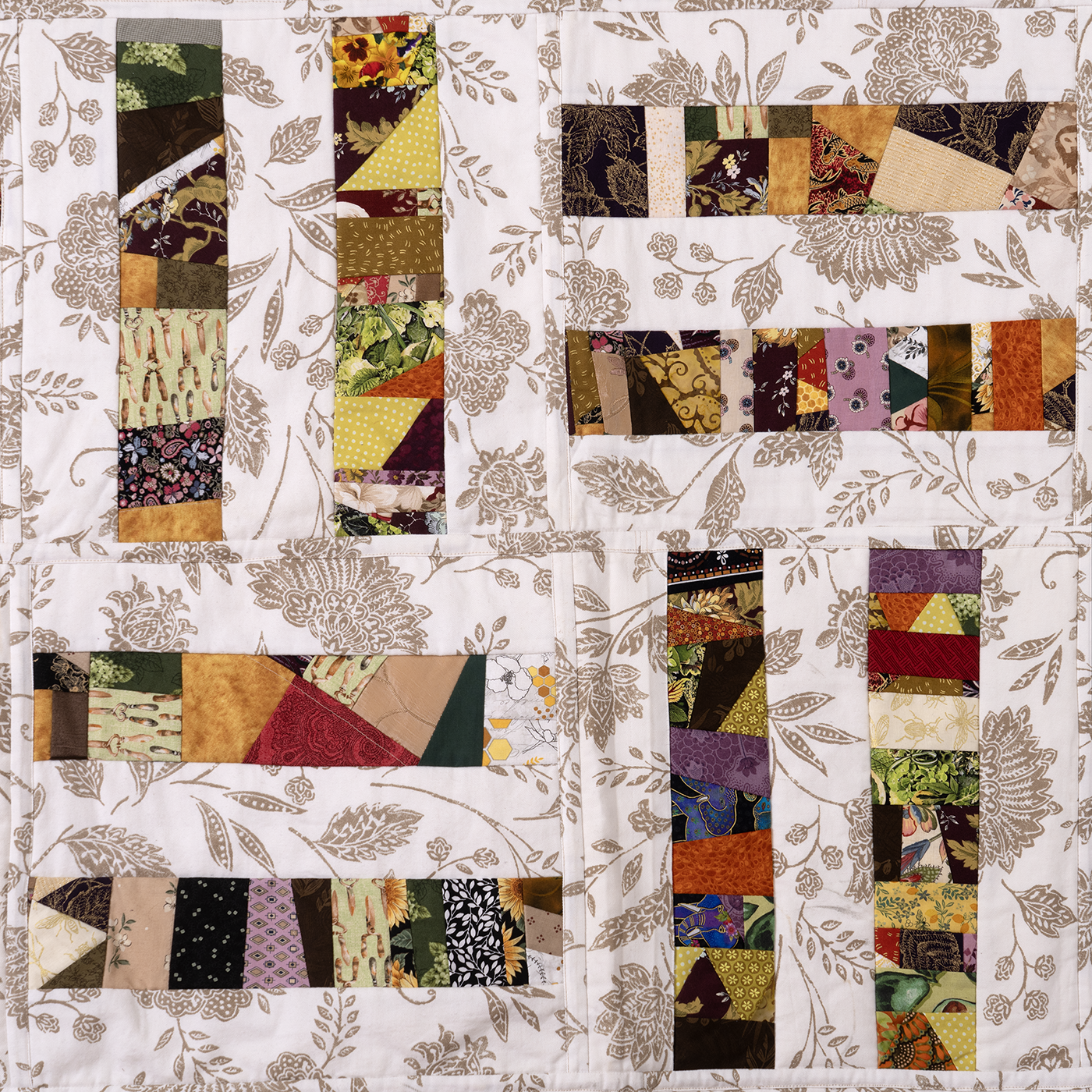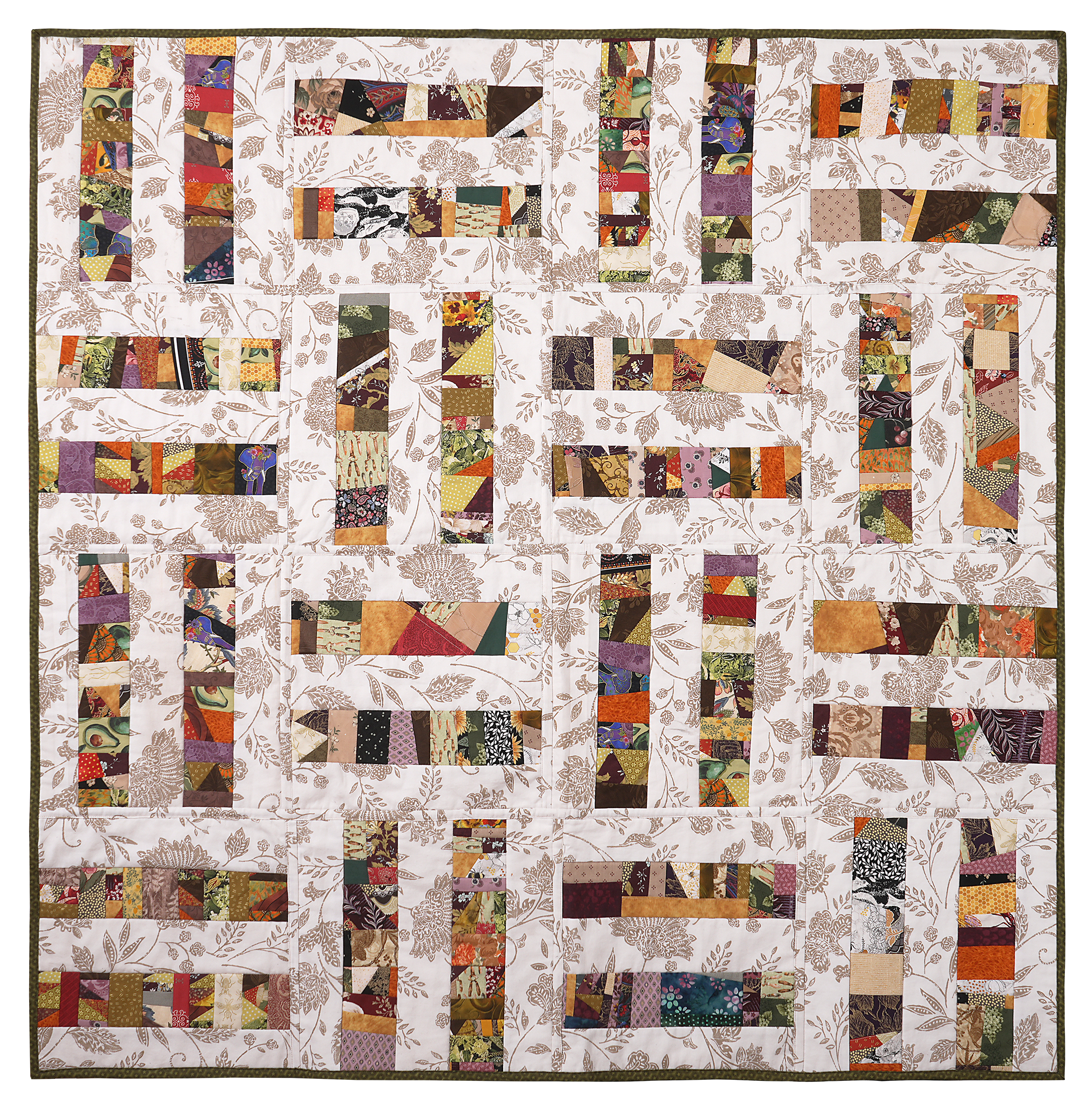 upcycled cotton twill, cotton fabricmachine piecing, QAYG, sashingprivate collectionSAVAGE 2023